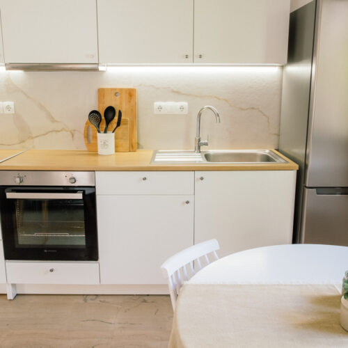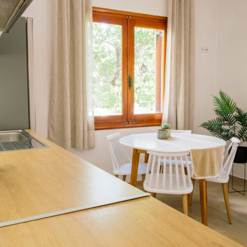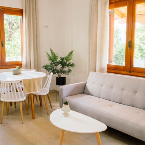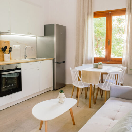 Comfortable Accommodations: Katerina Apartments in Daratsos offers comfortable aparthotel rooms with air-conditioning, balconies, and private bathrooms. Each room includes a kitchen equipped with modern appliances, a dining area, and a work desk.